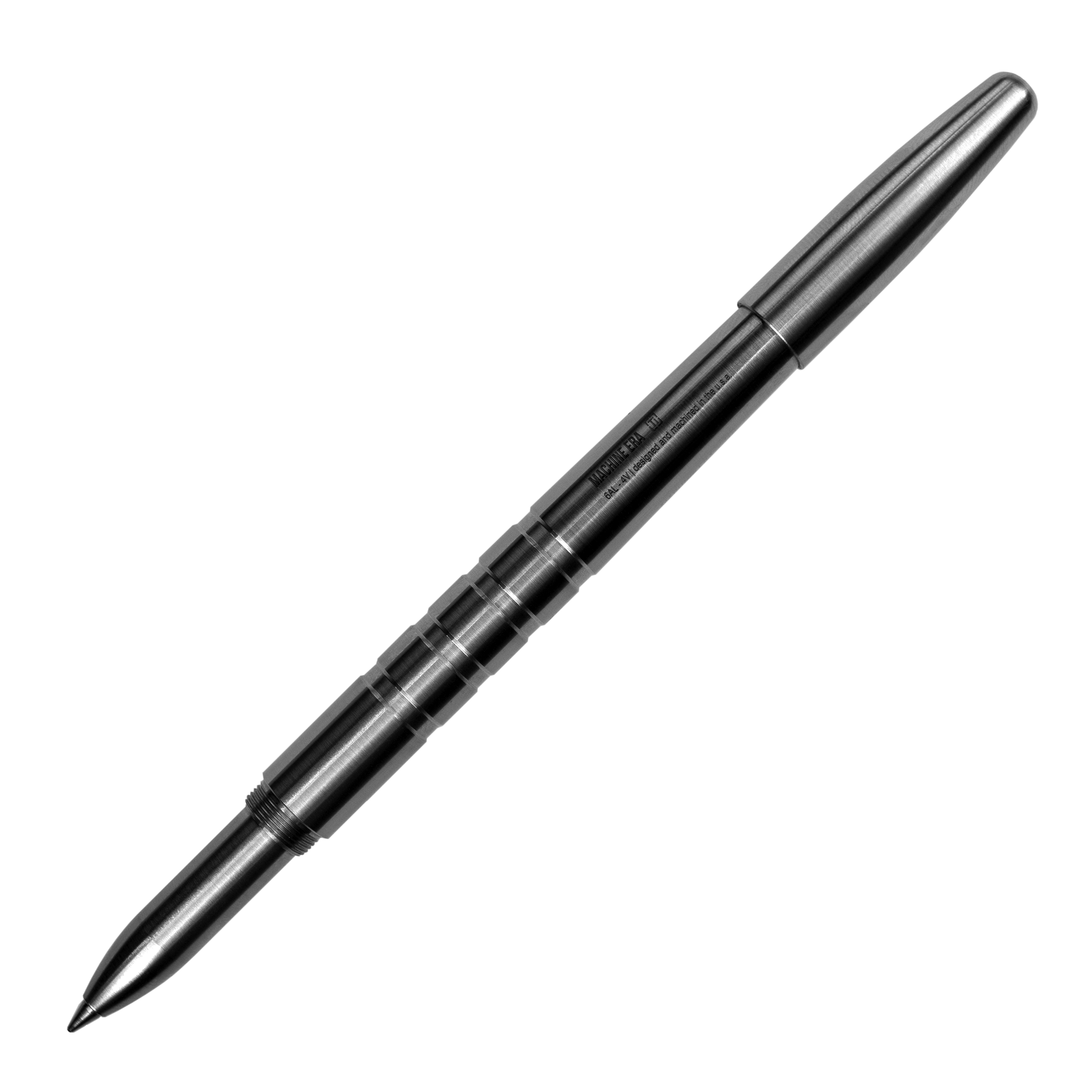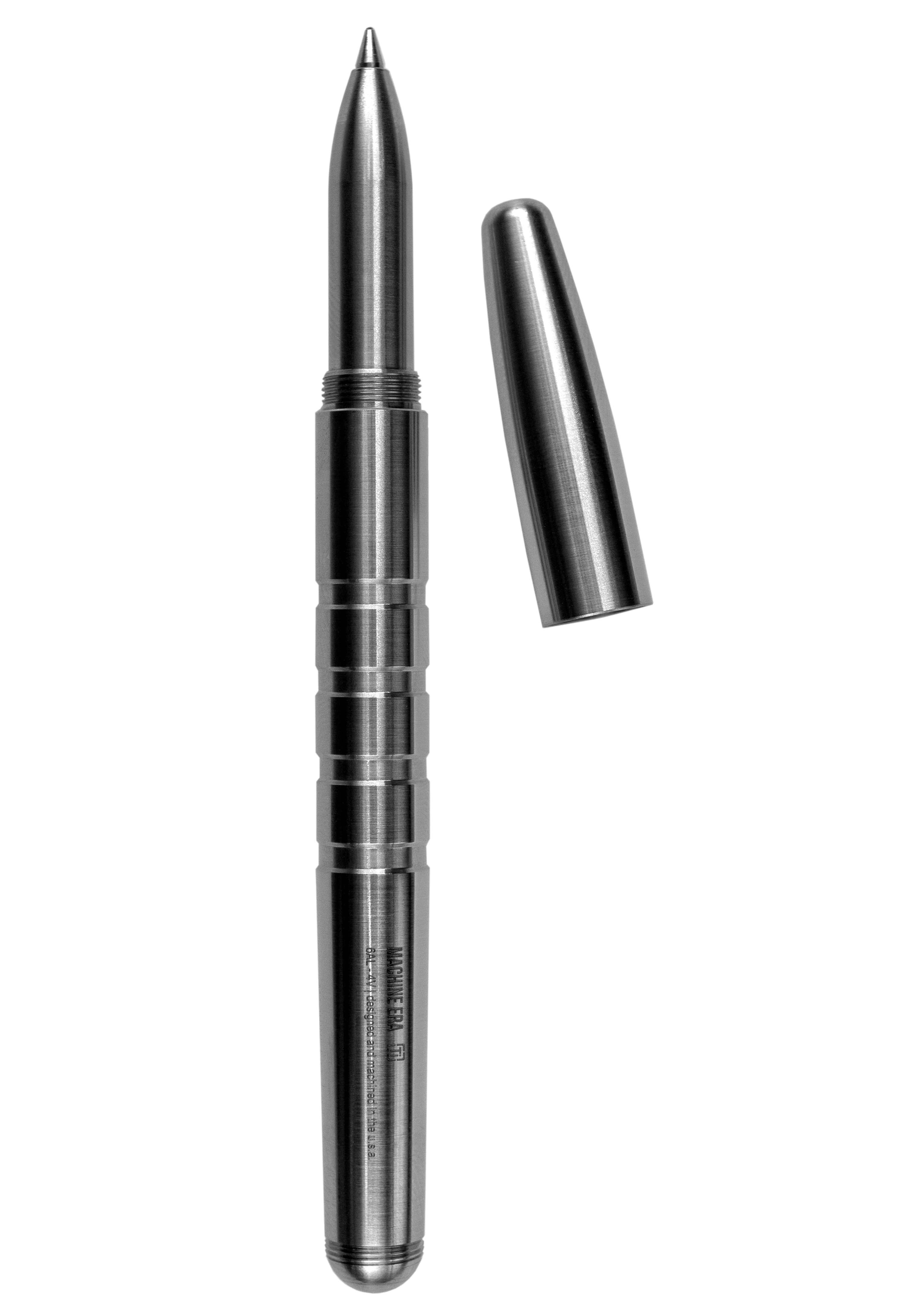 All parts are machined from solid bar for durability. The body provides a light weight, balanced, and satisfying in-hand feel. Ink is delivered by the well-loved Pilot G2 cartridge (included). A threaded cap keeps ink where you want it, and not where you don’t. Cap can be screwed on the back of the body while in use. All Ti construction, no plastic, springs, or mechanisms to wear. Compact design for everyday carry.