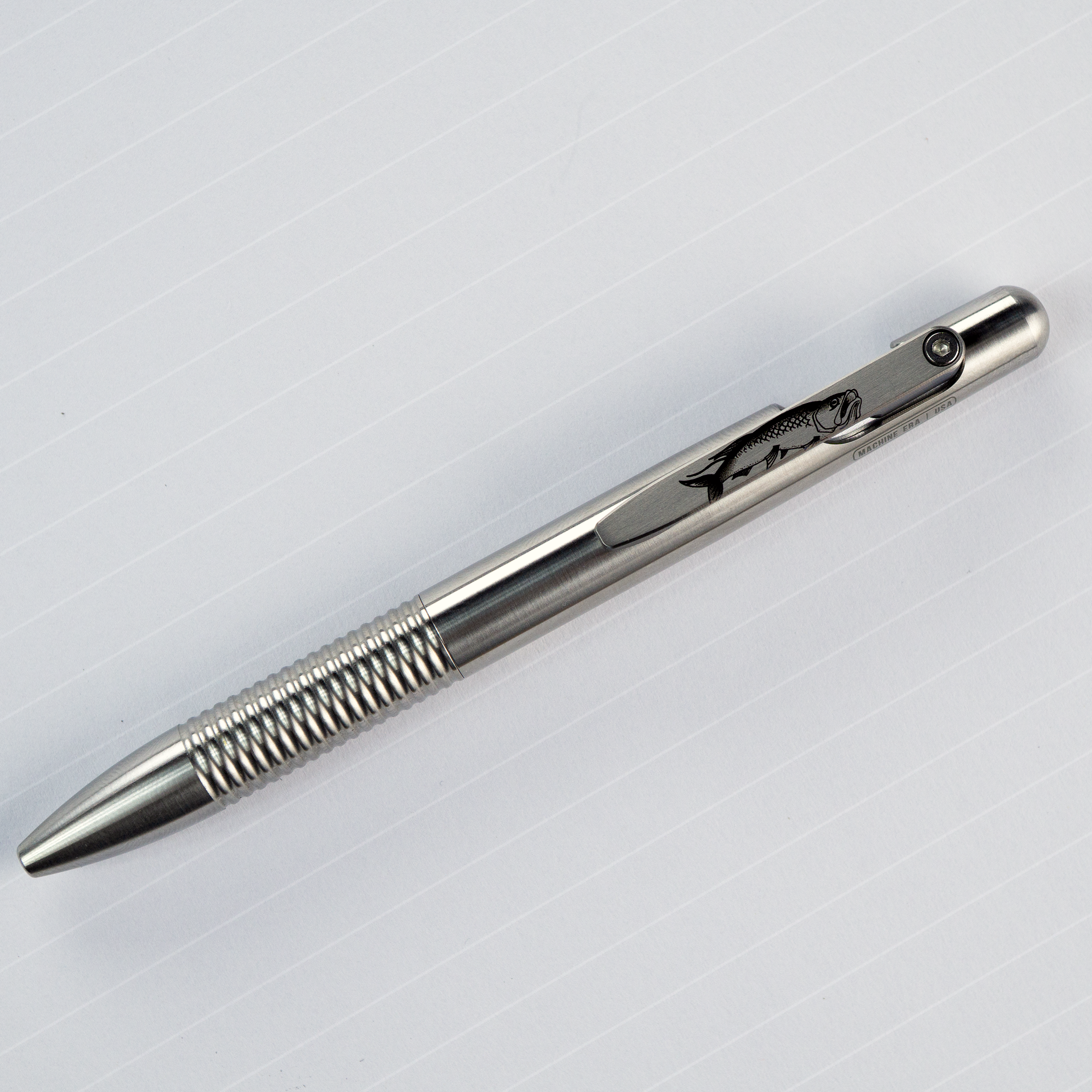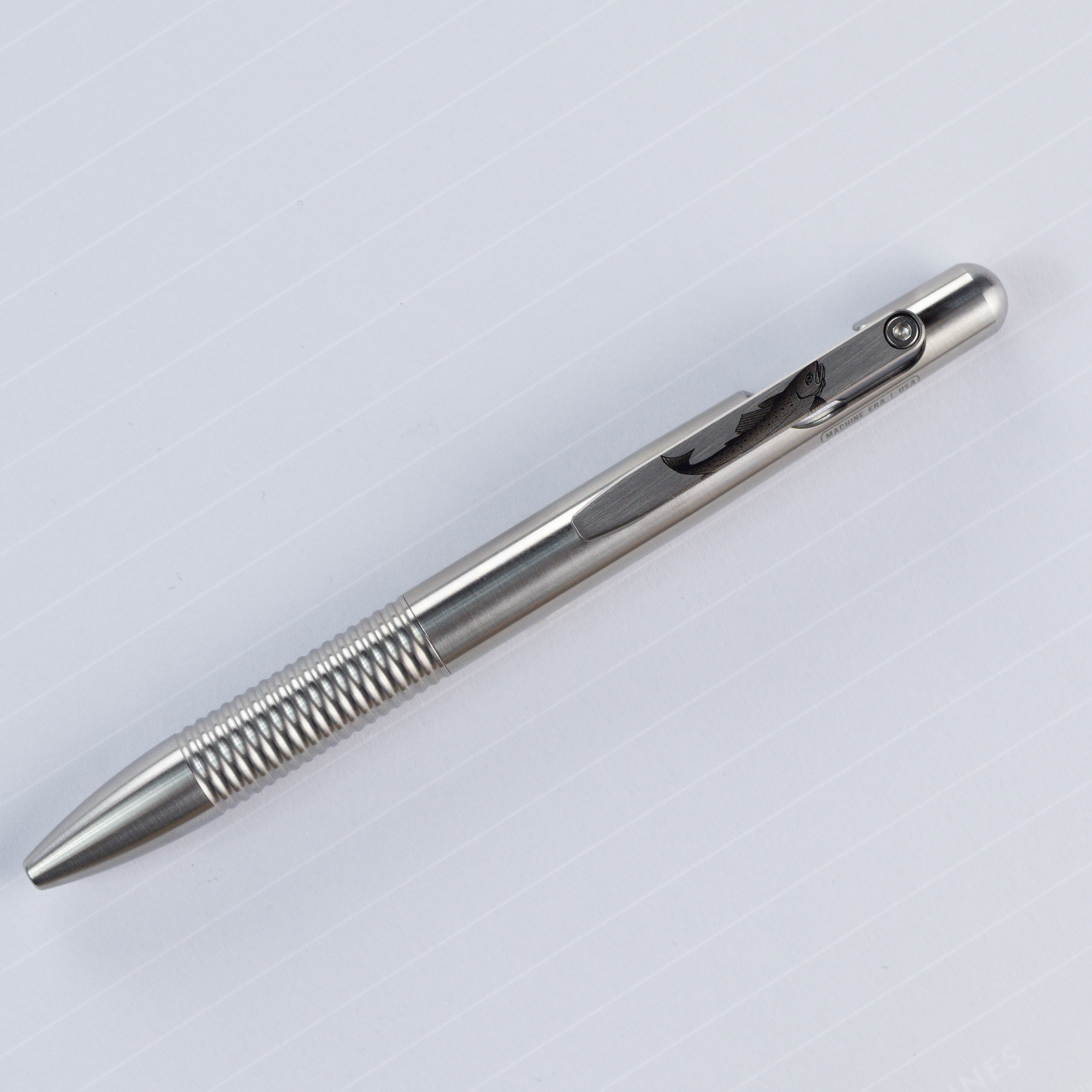 Clip: Machined from Grade 5 Ti, it's flexible enough for spring-back action, but also holds tightly with minimal space between the pen body.